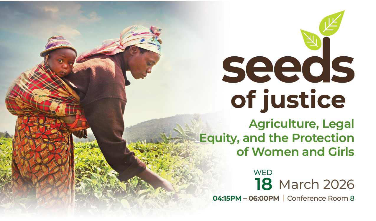 Convened as a UN CSW70 side event, Seeds of Justice: Agriculture, Legal Equity, and the Protection of Women and Girls will take place on 18 March 2026 from 4:45 to 6:00 PM in Conference Room 8. The discussion will explore how equitable land tenure, inclusive agricultural policies, and strengthened legal systems can expand access to justice, reinforce food sovereignty, and reduce vulnerability to economic insecurity and violence.